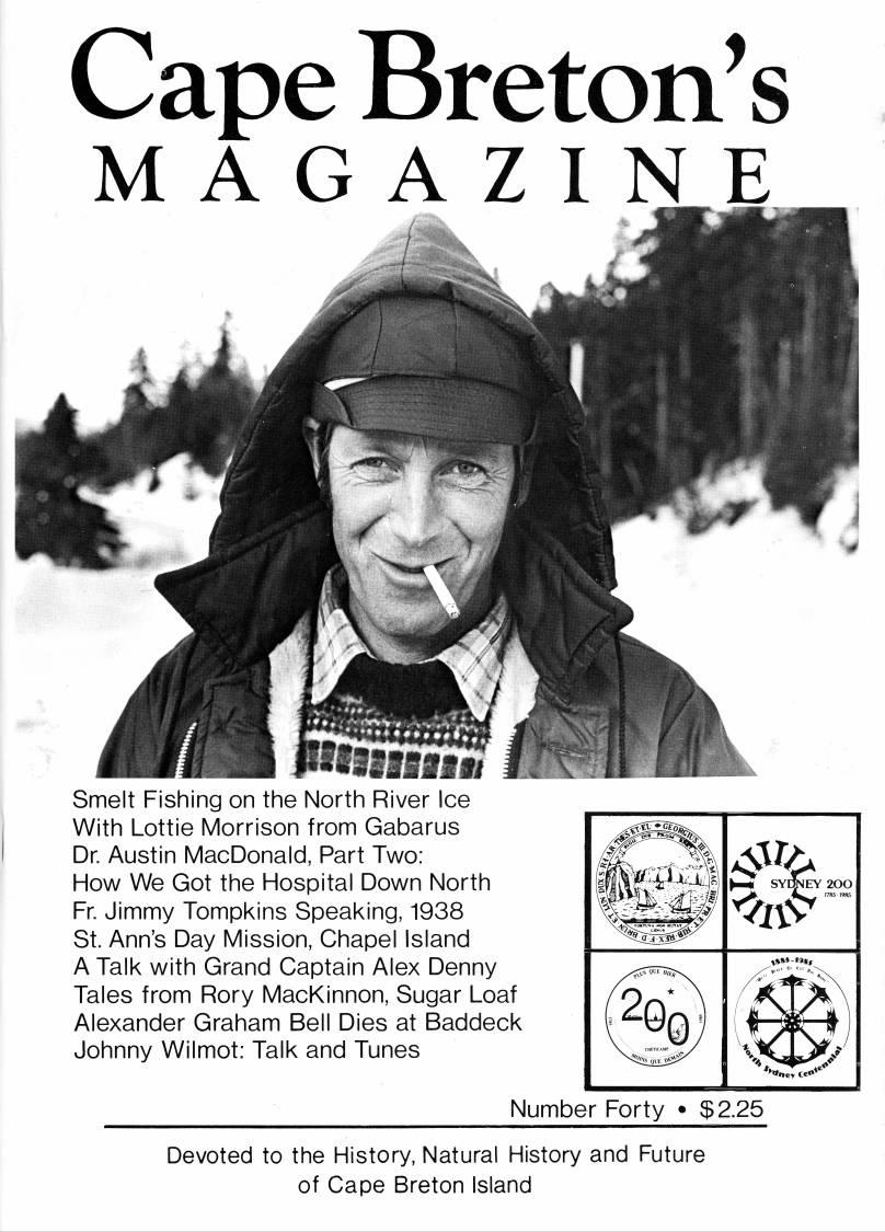 • Smelt Fishing on the North River Ice • With Lottie Morrison from Gabarus • Dr. Austin MacDonald: How We Got the Hospital Down North • Fr. Jimmy Tompkins Speaking • St. Ann's Day Mission, Chapel Island • A Talk with Grand Captain Alex Denny • Tales from Rory MacKinnon, Sugar Loaf • Alexander Graham Bell Dies at Baddeck • Johnny Wilmot: Talk and Tunes