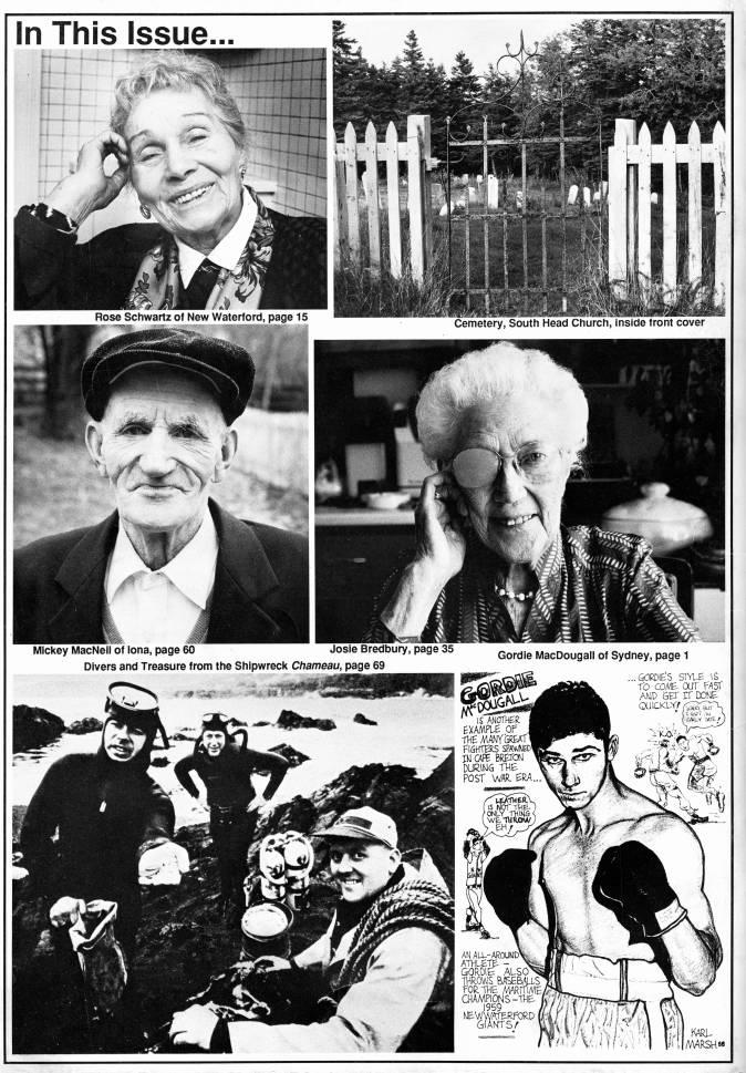 Published by Ronald Caplan on 1991/6/1 (151 reads)In This Issue... Mickey MacNeil of lona, page 60 Josie Bredbury, page 35 Divers and Treasure from the Shipwreck Chameau, page 69 Gordie MacDougall of Sydney, page 1 ' IS ANOfHeR EXAMPLE OP . -ThB /VtAMY(iR''T POST WAR. 'RA..: ro COMB OOT" FAST AMD SET" rr DO!C' AN AU'-AROUWD' ATHUETe - GORDlg ALSO , THUOWS BKBALLS f01' THE MARruME// 1959 mi.