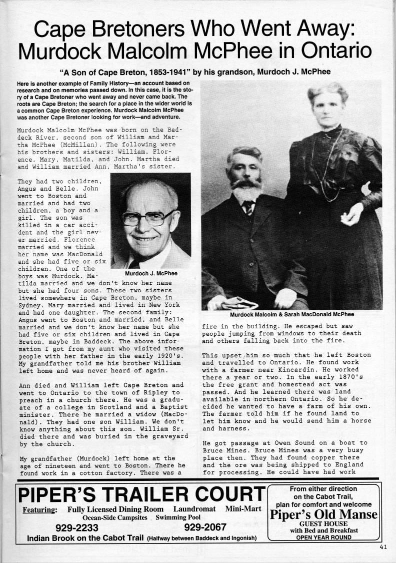 Page 41 - Cape Bretoners Who Went Away: Murdock McPhee in Ontario