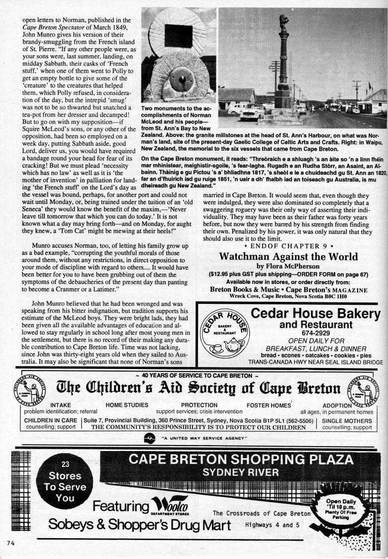 Page 74 - Availible now from Breton Books" Flora McPherson's Cape Breton Classic: Watchman Against the World The Remarkable Journey of Norman MacLeod & His People From Scotland to Cape Breton Island to New Zealand